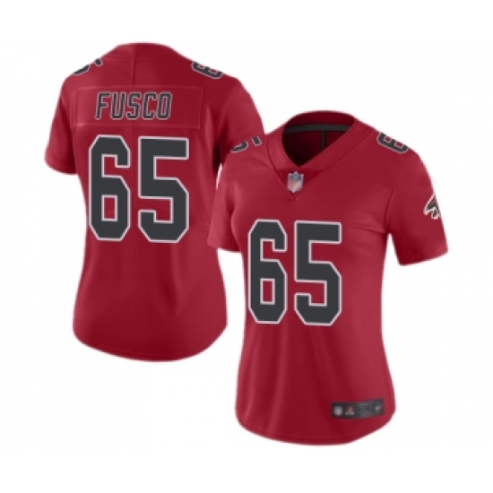 >Women's Atlanta Falcons #65 Brandon Fusco Limited Red Rush Vapor Untouchable Football Jersey