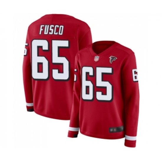 >Women's Atlanta Falcons #65 Brandon Fusco Limited Red Therma Long Sleeve Football Jersey