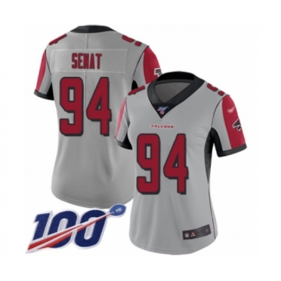 >Women's Atlanta Falcons #94 Deadrin Senat Limited Silver Inverted Legend 100th Season Football Jersey