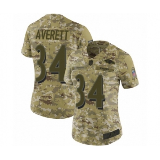 >Women's Baltimore Ravens #34 Anthony Averett Limited Camo 2018 Salute to Service Football Jersey