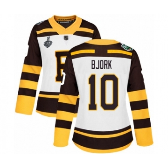 Women's Boston Bruins #10 Anders Bjork Authentic White Winter Classic 2019 Stanley Cup Final Bound Hockey Jersey