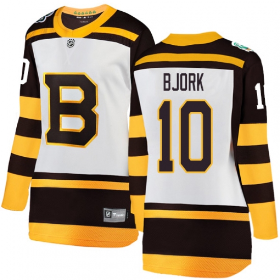 >Women's Boston Bruins #10 Anders Bjork White 2019 Winter Classic Fanatics Branded Breakaway NHL Jersey