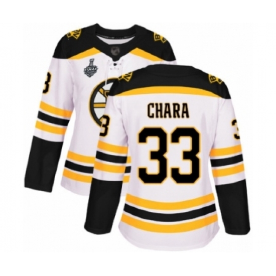 Women's Boston Bruins #33 Zdeno Chara Authentic White Away 2019 Stanley Cup Final Bound Hockey Jersey