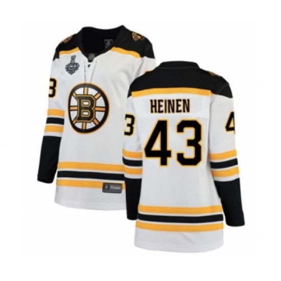 Women's Boston Bruins #43 Danton Heinen Authentic White Away Fanatics Branded Breakaway 2019 Stanley Cup Final Bound Hockey Jersey