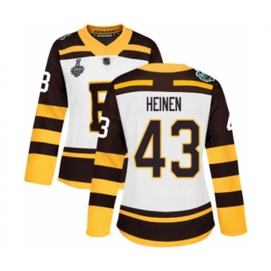 Women's Boston Bruins #43 Danton Heinen Authentic White Winter Classic 2019 Stanley Cup Final Bound Hockey Jersey
