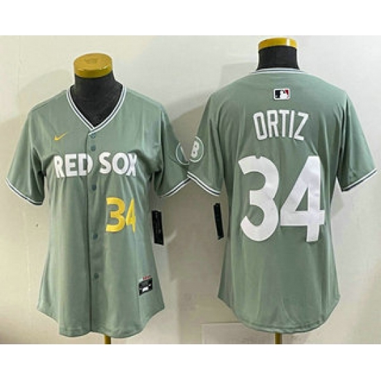 >Women's Boston Red Sox #34 David Ortiz Light Green 2025 City Connect Player Name Limited Jersey