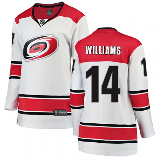 Home>NHL>Carolina Hurricanes>Justin Williams>Women's Carolina Hurricanes #14 Justin Williams Authentic White Away Fanatics Branded Breakaway NHL Jersey