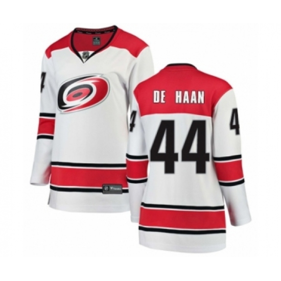 >Women's Carolina Hurricanes #44 Calvin De Haan Authentic White Away Fanatics Branded Breakaway NHL Jersey