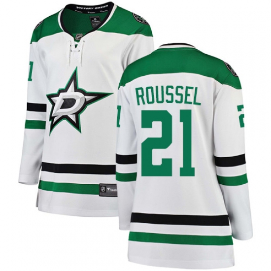 Home>NHL>Dallas Stars>Antoine Roussel>Women's Dallas Stars #21 Antoine Roussel Authentic White Away Fanatics Branded Breakaway NHL Jersey