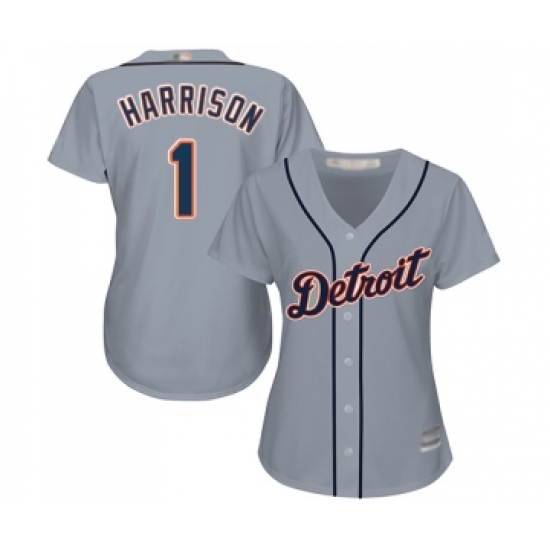 Women's Detroit Tigers #1 Josh Harrison Replica Grey Road Cool Base Baseball Jersey