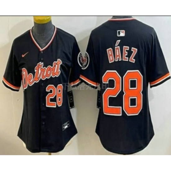 Women's Detroit Tigers #28 Javier Baez 2024 Navy City Connect Cool Base Limited Stitched Jerseys