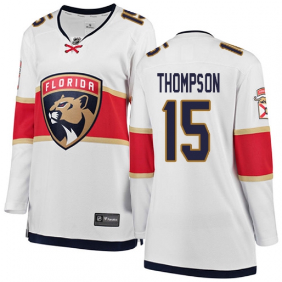>Women's Florida Panthers #15 Paul Thompson Authentic White Away Fanatics Branded Breakaway NHL Jersey