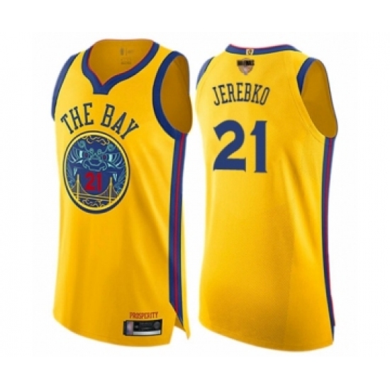Women's Golden State Warriors #21 Jonas Jerebko Swingman Gold Basketball 2019 Basketball Finals Bound Jersey - City Edition