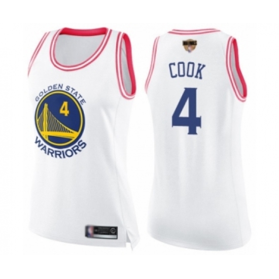 Women's Golden State Warriors #4 Quinn Cook Swingman White Pink Fashion Basketball 2019 Basketball Finals Bound Jersey