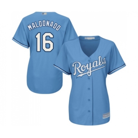 >Women's Kansas City Royals #16 Martin Maldonado Replica Light Blue Alternate 1 Cool Base Baseball Jersey