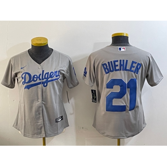 Women's Los Angeles Dodgers #21 Walker Buehler Grey Stitched Cool Base Nike Jersey