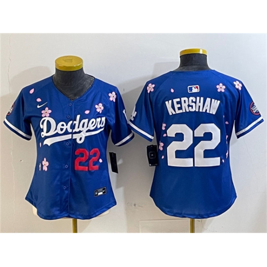 Women's Los Angeles Dodgers #22 Clayton Kershaw Royal 2025 Tokyo Series Limited Stitched Baseball Jersey(Run Small)