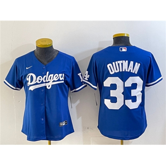 >Women's Los Angeles Dodgers #33 James Outman Royal Cool Base Stitched Baseball Jersey(Run Small)