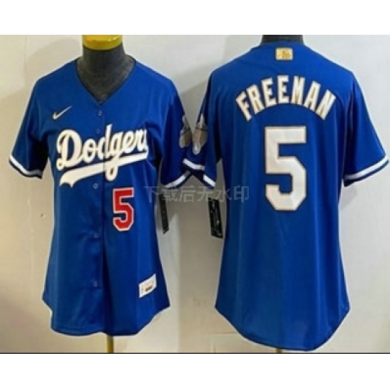 >Women's Los Angeles Dodgers #5 Freddie Freeman Blue 2026 Gold Collection Stadium Jersey