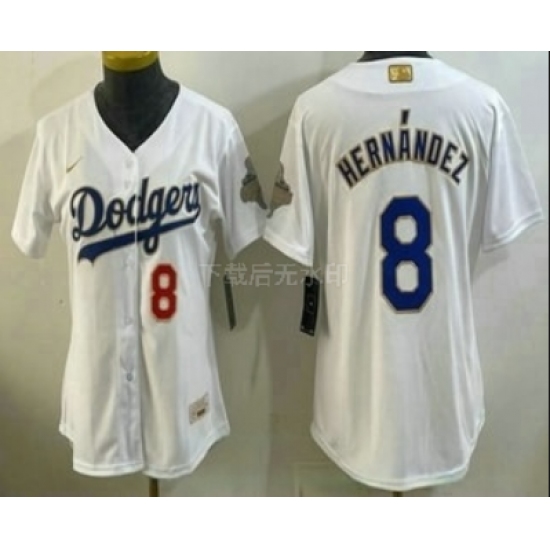 Women's Los Angeles Dodgers #8 Enrique Hernandez White 2026 Gold Collection Stadium Jersey