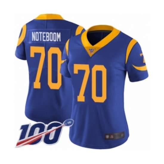 Women's Los Angeles Rams #70 Joseph Noteboom Royal Blue Alternate Vapor Untouchable Limited Player 100th Season Football Jersey