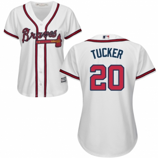 >Women's Majestic Atlanta Braves #20 Preston Tucker Replica White Home Cool Base MLB Jersey
