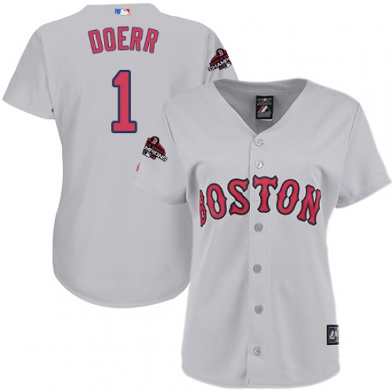 Women's Majestic Boston Red Sox #1 Bobby Doerr Authentic Grey Road 2018 World Series Champions MLB Jersey