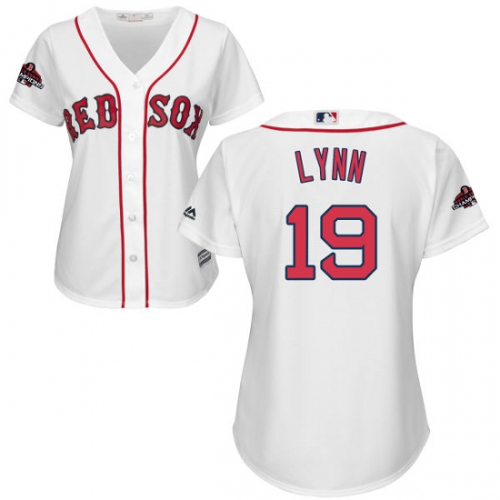 Women's Majestic Boston Red Sox #19 Fred Lynn Authentic White Home 2018 World Series Champions MLB Jersey