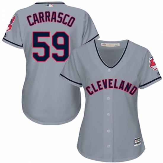 Women's Majestic Cleveland Indians #59 Carlos Carrasco Replica Grey Road Cool Base MLB Jersey