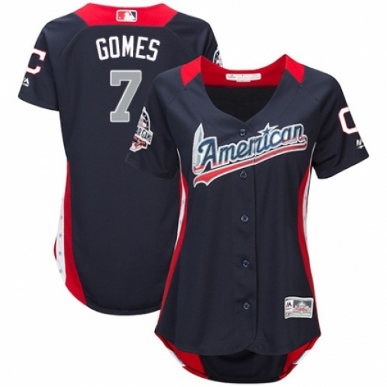 Women's Majestic Cleveland Indians #7 Yan Gomes Game Navy Blue American League 2018 MLB All-Star MLB Jersey