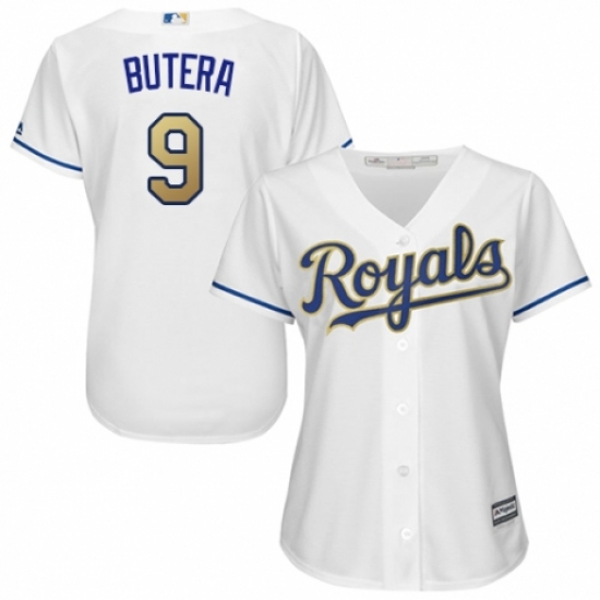 >Women's Majestic Kansas City Royals #9 Drew Butera Replica White Home Cool Base MLB Jersey