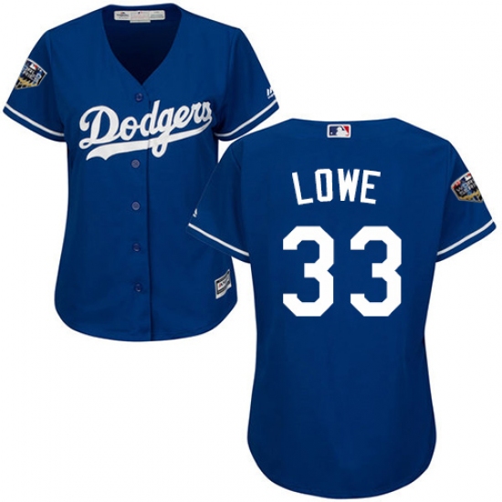 >Women's Majestic Los Angeles Dodgers #33 Mark Lowe Authentic Royal Blue Alternate Cool Base 2018 World Series MLB Jersey