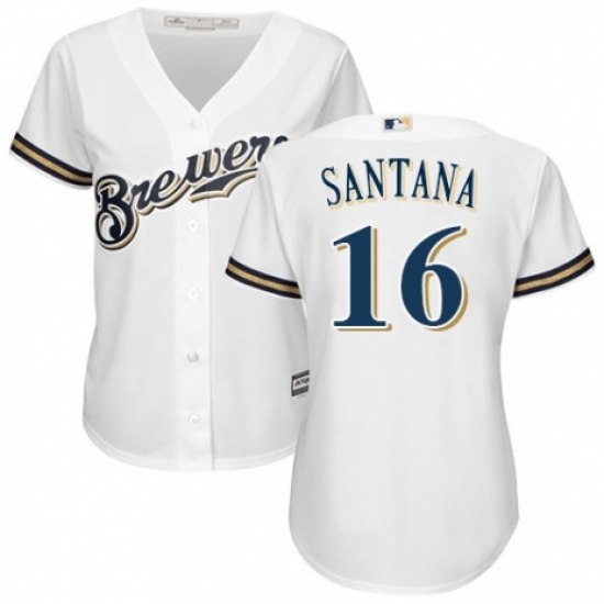 Women's Majestic Milwaukee Brewers #16 Domingo Santana Replica White Alternate Cool Base MLB Jersey