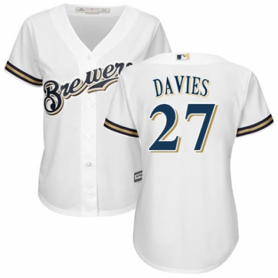 Men's Majestic Milwaukee Brewers #27 Zach Davies White Home Flex Base Authentic Collection MLB Jersey