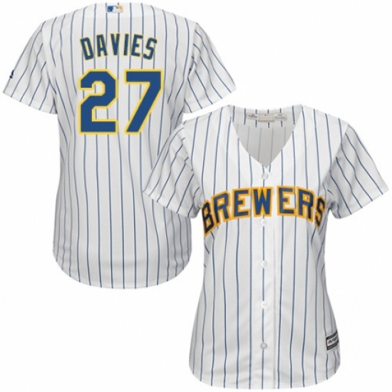 >Women's Majestic Milwaukee Brewers #27 Zach Davies Replica White Home Cool Base MLB Jersey