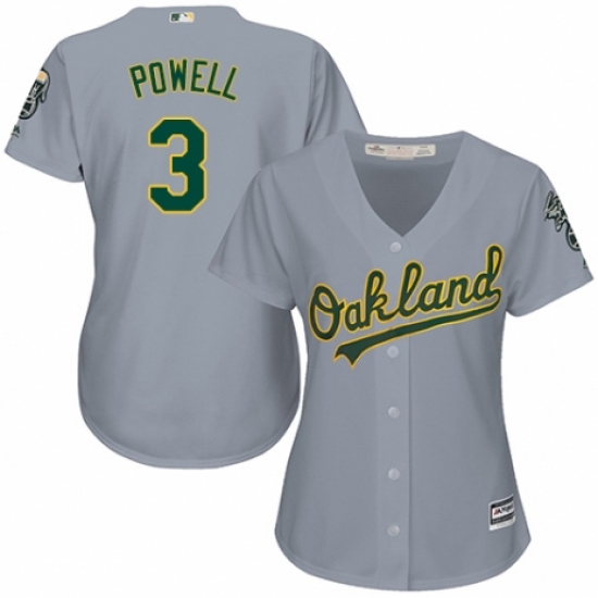 Women's Majestic Oakland Athletics #3 Boog Powell Authentic Grey Road Cool Base MLB Jersey