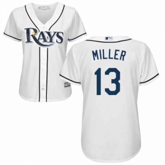 >Women's Majestic Tampa Bay Rays #13 Brad Miller Replica White Home Cool Base MLB Jersey