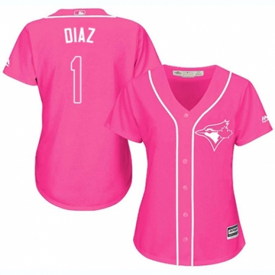 Women's Majestic Toronto Blue Jays #1 Aledmys Diaz Replica Pink Fashion Cool Base MLB Jersey