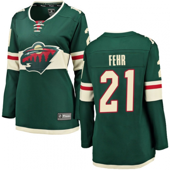 >Women's Minnesota Wild #21 Eric Fehr Authentic Green Home Fanatics Branded Breakaway NHL Jersey