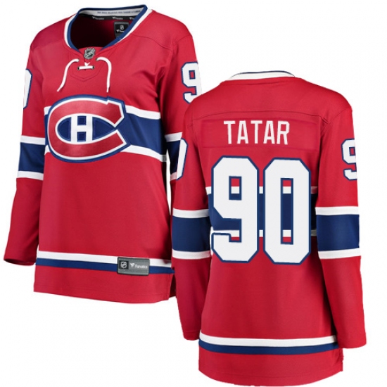 >Women's Montreal Canadiens #90 Tomas Tatar Authentic Red Home Fanatics Branded Breakaway NHL Jersey