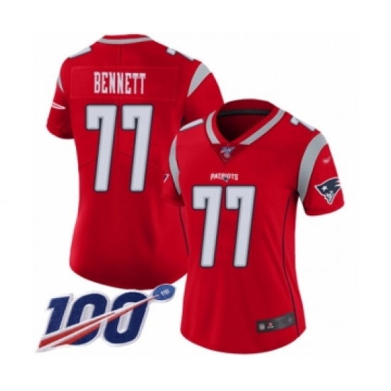 Women's New England Patriots #77 Michael Bennett Limited Red Inverted Legend 100th Season Football Jersey