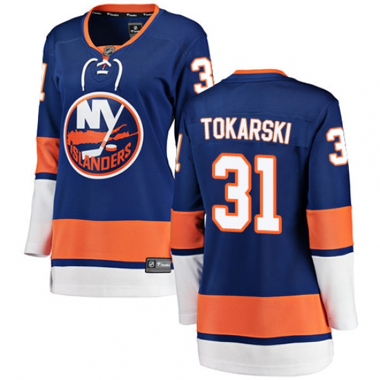 >Women's New York Islanders #31 Dustin Tokarski Fanatics Branded Royal Blue Home Breakaway NHL Jersey