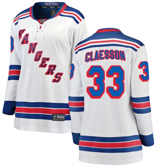 >Women's New York Rangers #33 Fredrik Claesson Fanatics Branded White Away Breakaway NHL Jersey