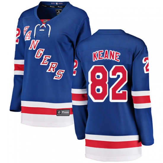 >Women's New York Rangers #82 Joey Keane Fanatics Branded Royal Blue Home Breakaway NHL Jersey
