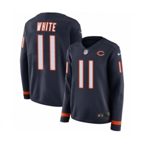 >Women's Nike Chicago Bears #11 Kevin White Limited Navy Blue Therma Long Sleeve NFL Jersey