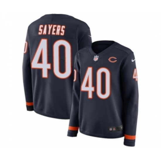 Women's Nike Chicago Bears #40 Gale Sayers Limited Navy Blue Therma Long Sleeve NFL Jersey