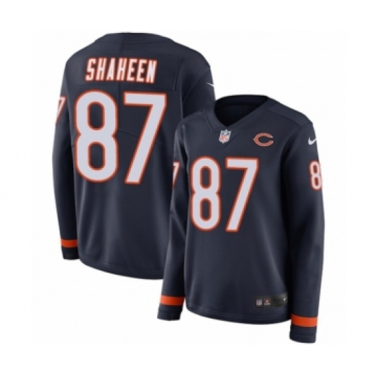 Women's Nike Chicago Bears #87 Adam Shaheen Limited Navy Blue Therma Long Sleeve NFL Jersey