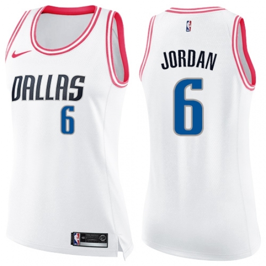 >Women's Nike Dallas Mavericks #6 DeAndre Jordan Swingman White Pink Fashion NBA Jersey
