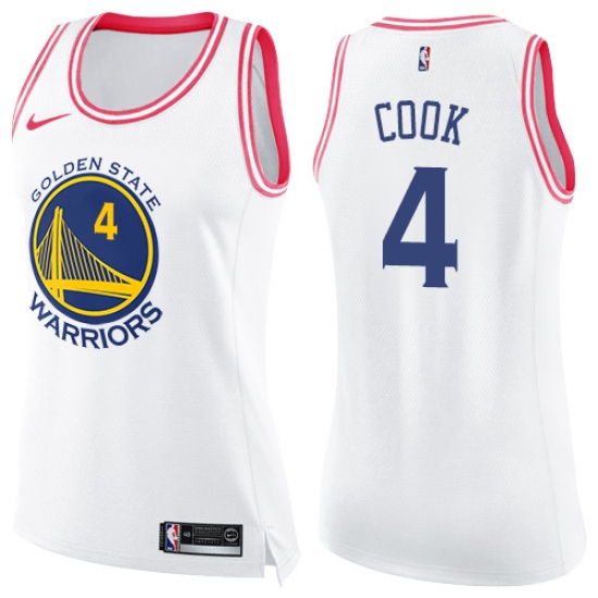 Women's Nike Golden State Warriors #4 Quinn Cook Swingman White Pink Fashion NBA Jersey