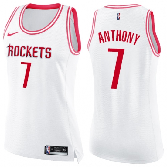 >Women's Nike Houston Rockets #7 Carmelo Anthony Swingman White Pink Fashion NBA Jersey